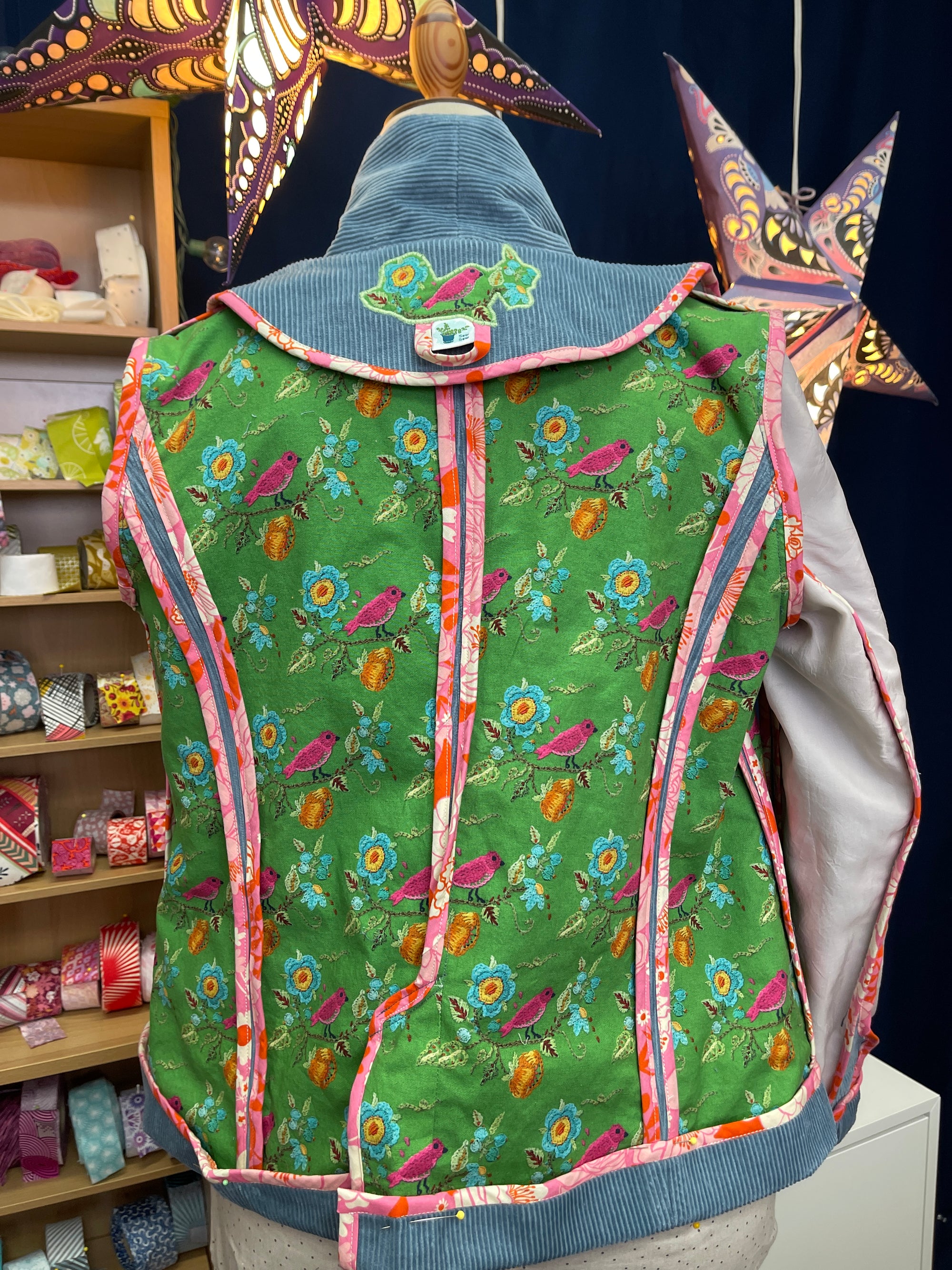 Corduroy with colorgul lining. I lengthened it 1.5" and added Sleeve and Back Vents.