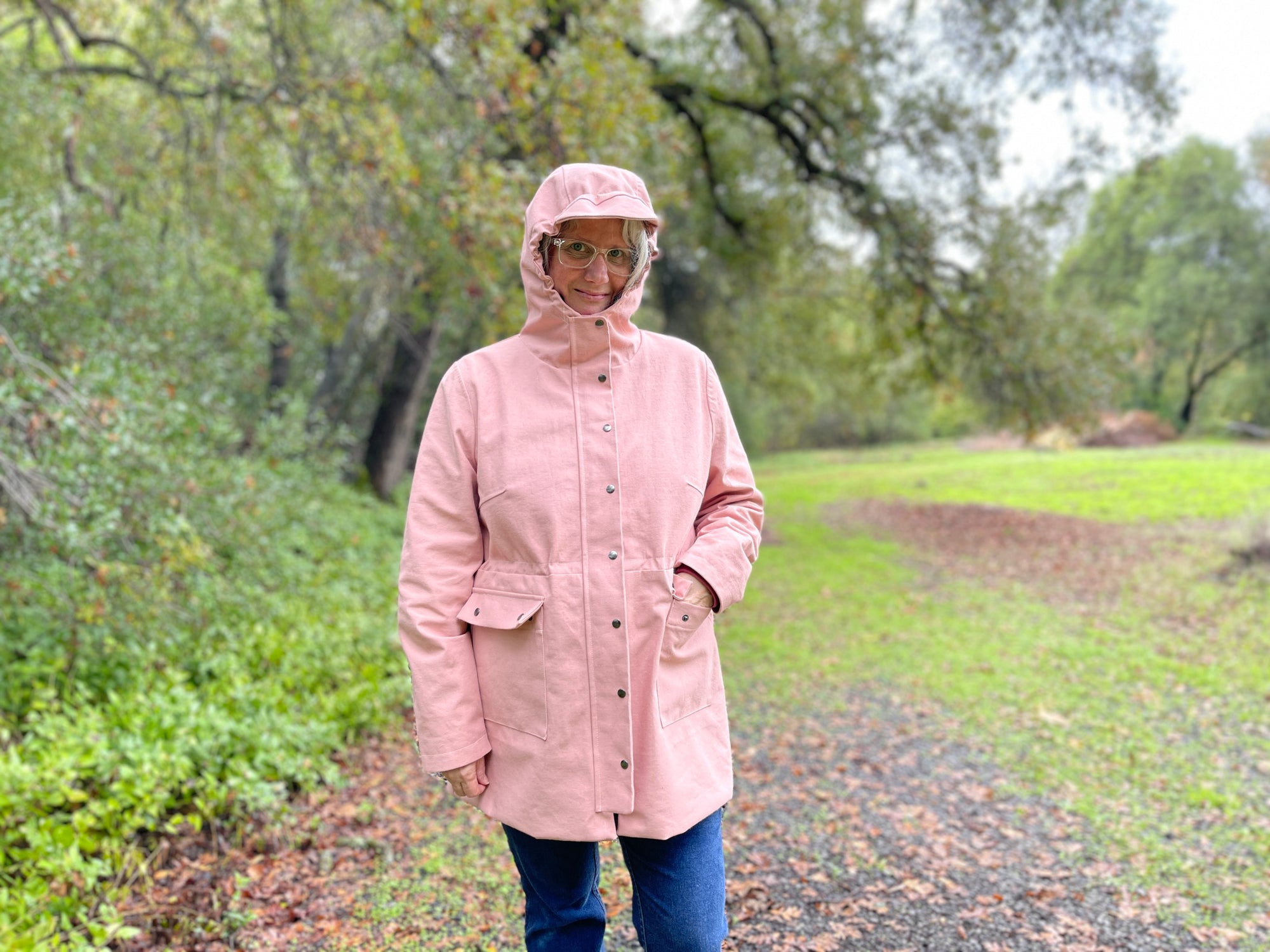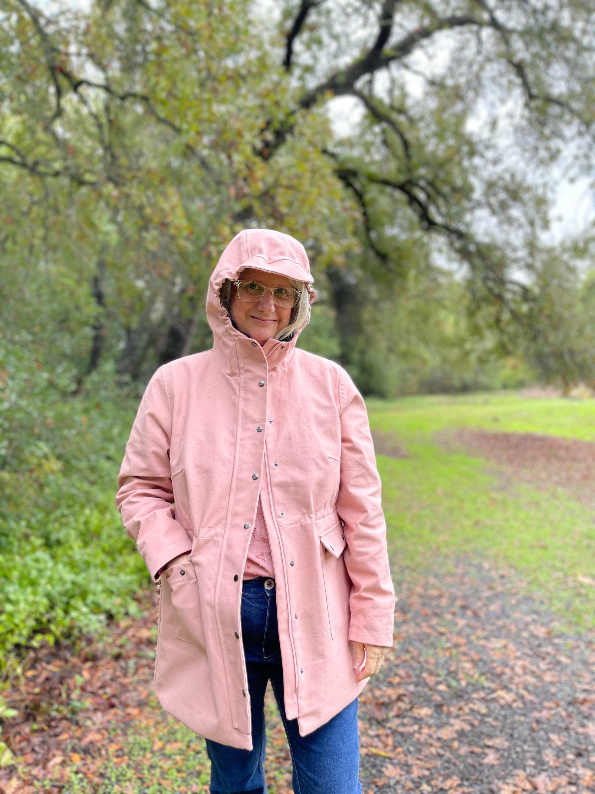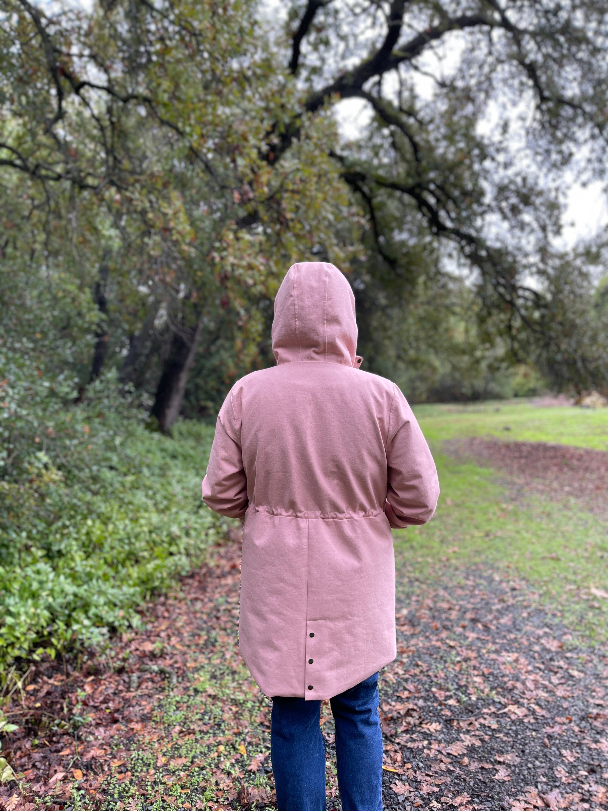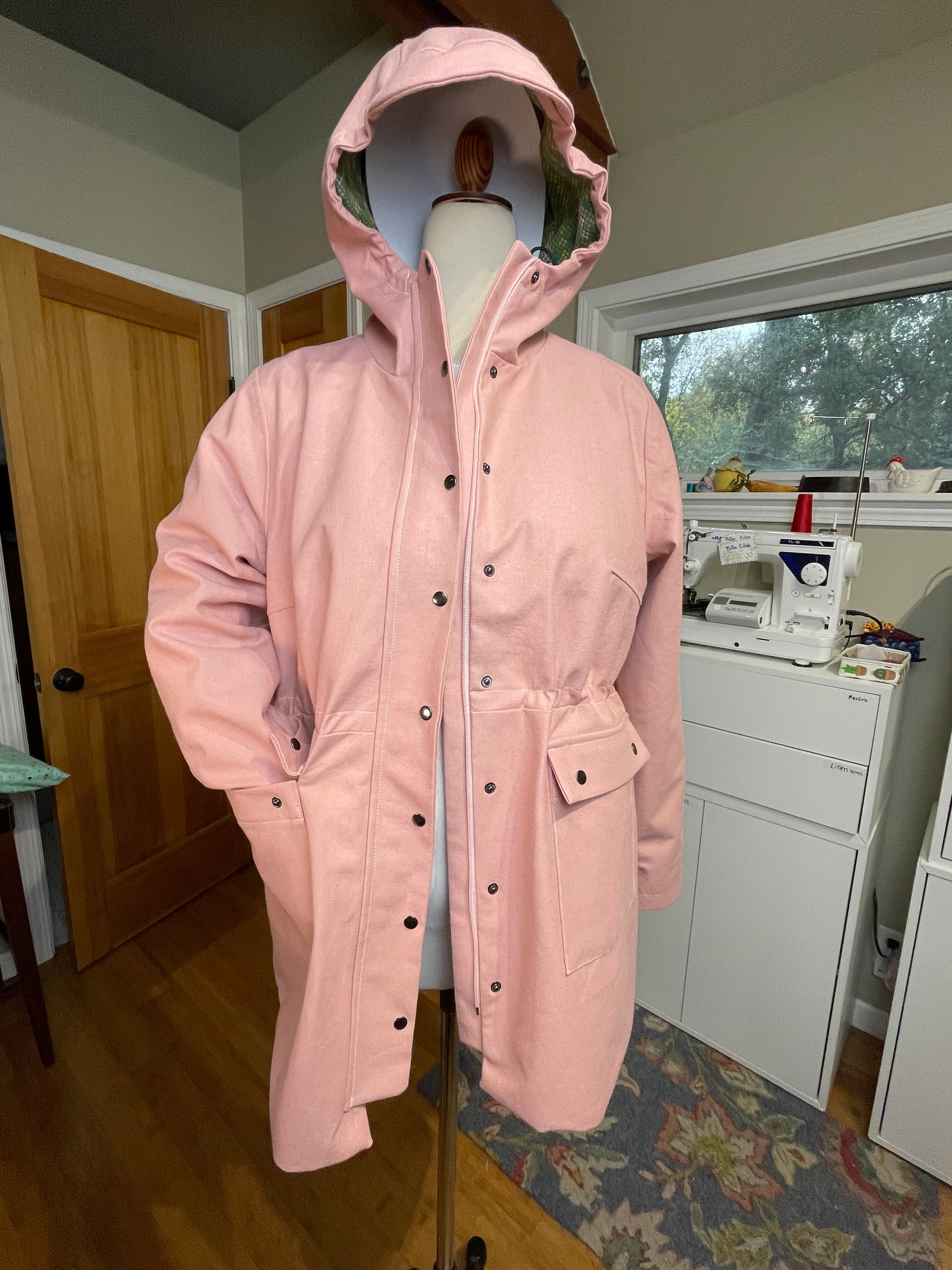 I've worked as a designer at a water sportswear company so while this isn't the most waterproof or techy-est of jackets, it's cute, well drafted, and best of all it fits lots of bodies, something the company I worked at didn't do!! And it does the job. I don't live someplace where it rains often and I have a coat for that. This could also easily be made as a plain coat too.