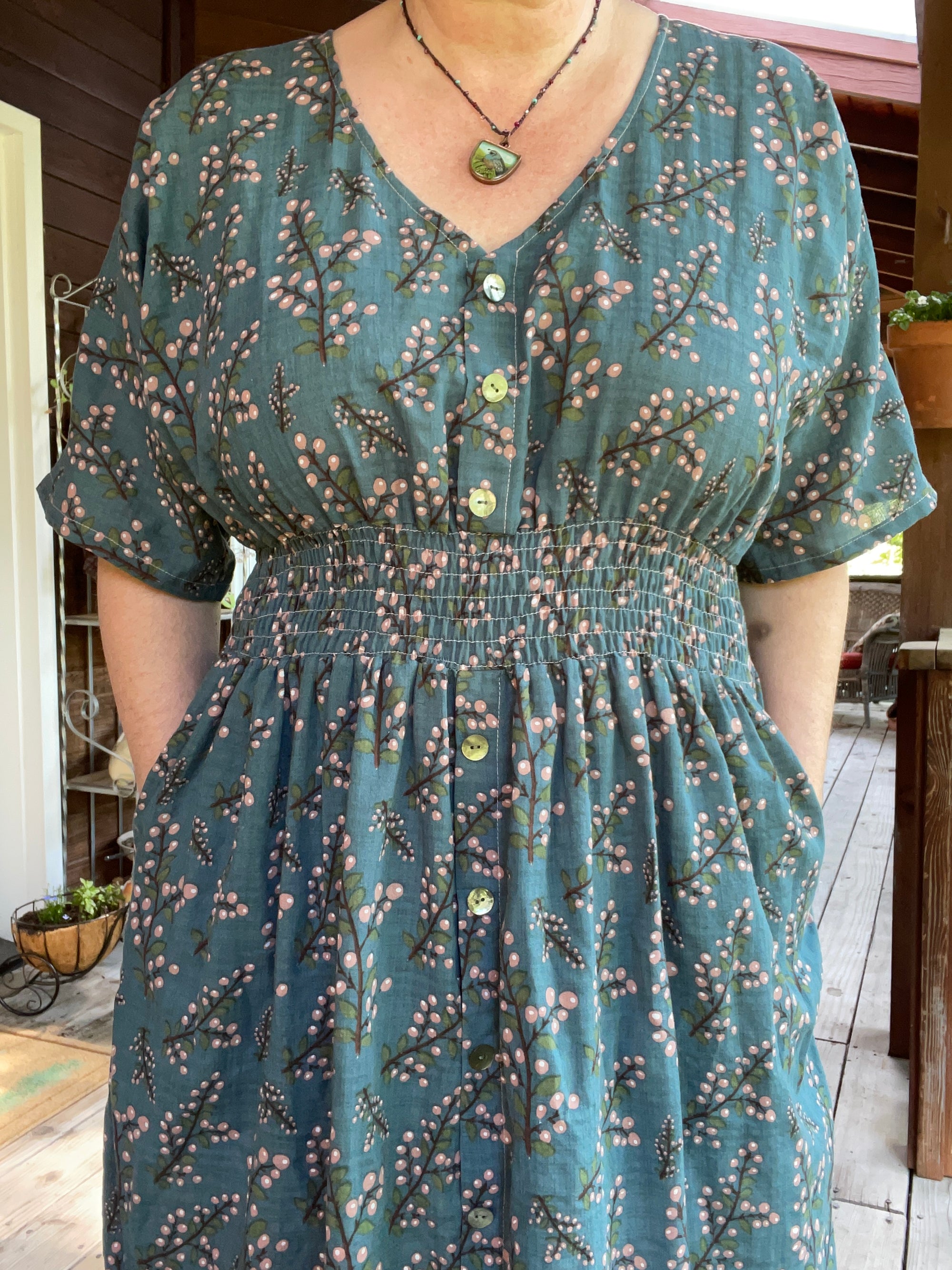 Notes:I had the privilege to make the official how to video for Cashmerette! I've made two of this dress. One is in a heavy linen rayon floral. I made it without the faux placket and I faced the elastic panel.