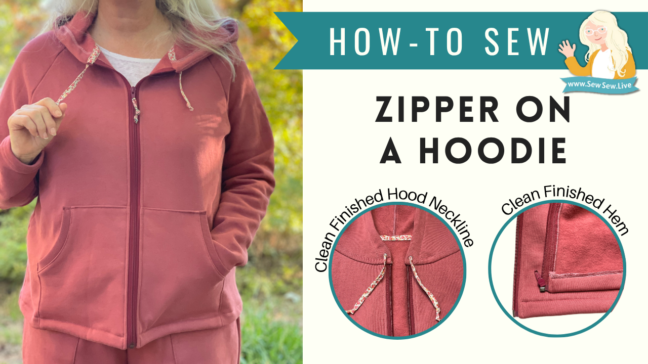 Using any hoodie pattern, this tutorial shows options on how to painlessly and successfully sew and finish the zipper on the front of a zippered hoodie.